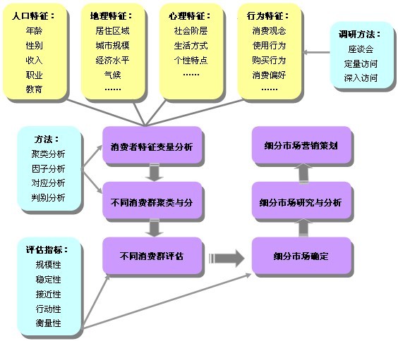 市場細(xì)分研究是按照一定的基礎(chǔ)和變數(shù),把整個(gè)市場細(xì)化成不同的消費(fèi)者群。每個(gè)細(xì)分的消費(fèi)者群內(nèi)部都具有較高程度的同質(zhì)性,而與其他的消費(fèi)者群則存在明顯的差異性。市場細(xì)分的目的就是從各個(gè)細(xì)分的消費(fèi)者群當(dāng)中,辨認(rèn)和確定企業(yè)的目標(biāo)市場,然后針對不同的目標(biāo)市場采取富有針對性的產(chǎn)品定位和市場營銷戰(zhàn)略,以獲取最佳收益。